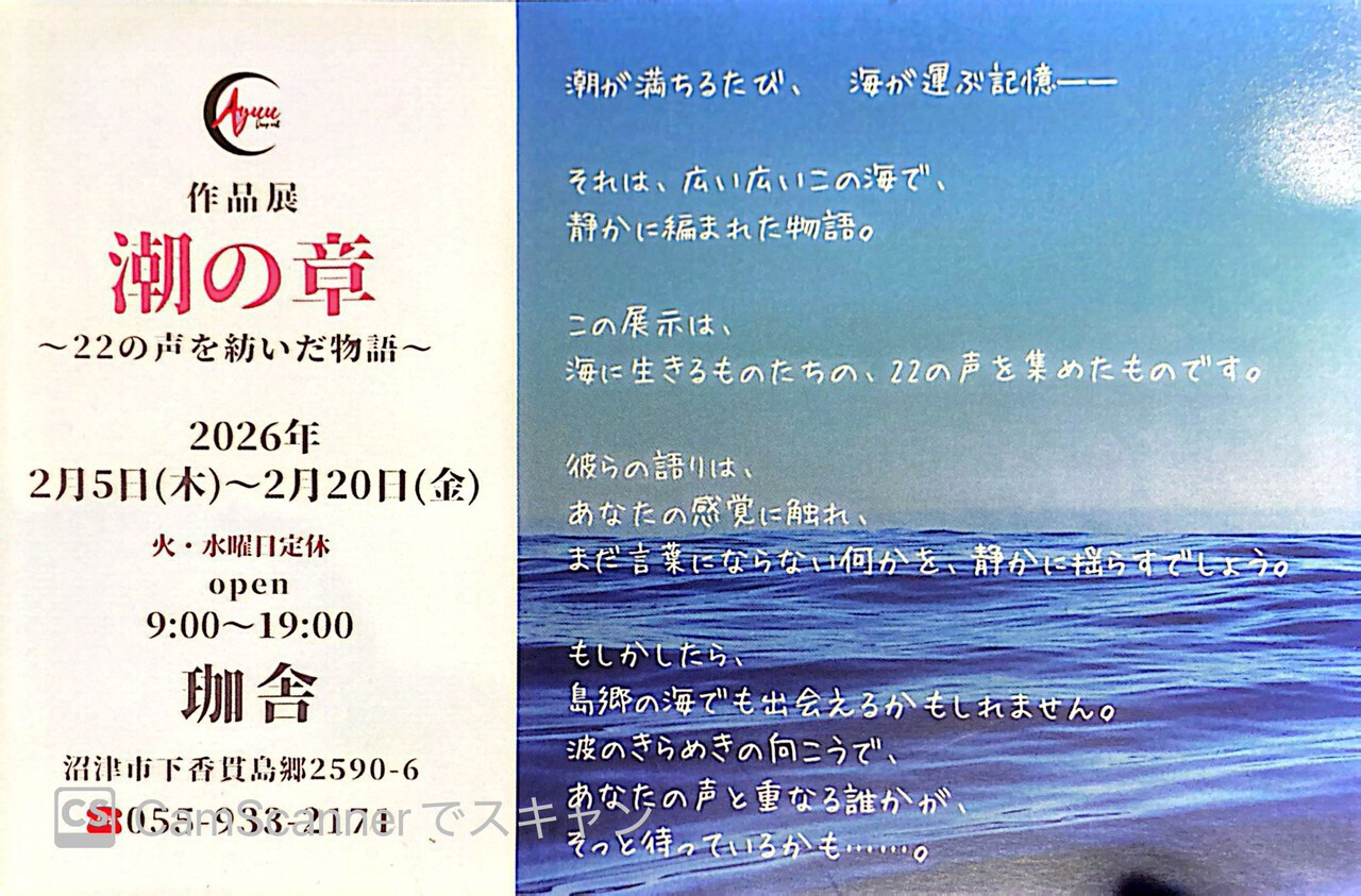 伊東での開催が多かったのですが、今回は沼津で展示させて頂きます。皆さまにお会い出来るのが楽しみです♪